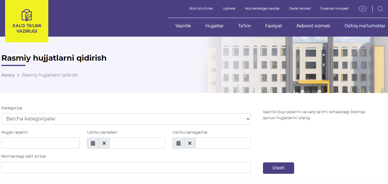 Xalq ta’limi vazirligining 2021 yil birinchi yarim yilligiga mo‘ljallangan ish rejasi va 2020 yilda jismoniy va yuridik shaxslarning murojaatlari bilan ishlash samaradorligi to‘g‘risida. Xalq ta’limi vazirligida Vazirlar Mahkamasining 2021 yil 27...